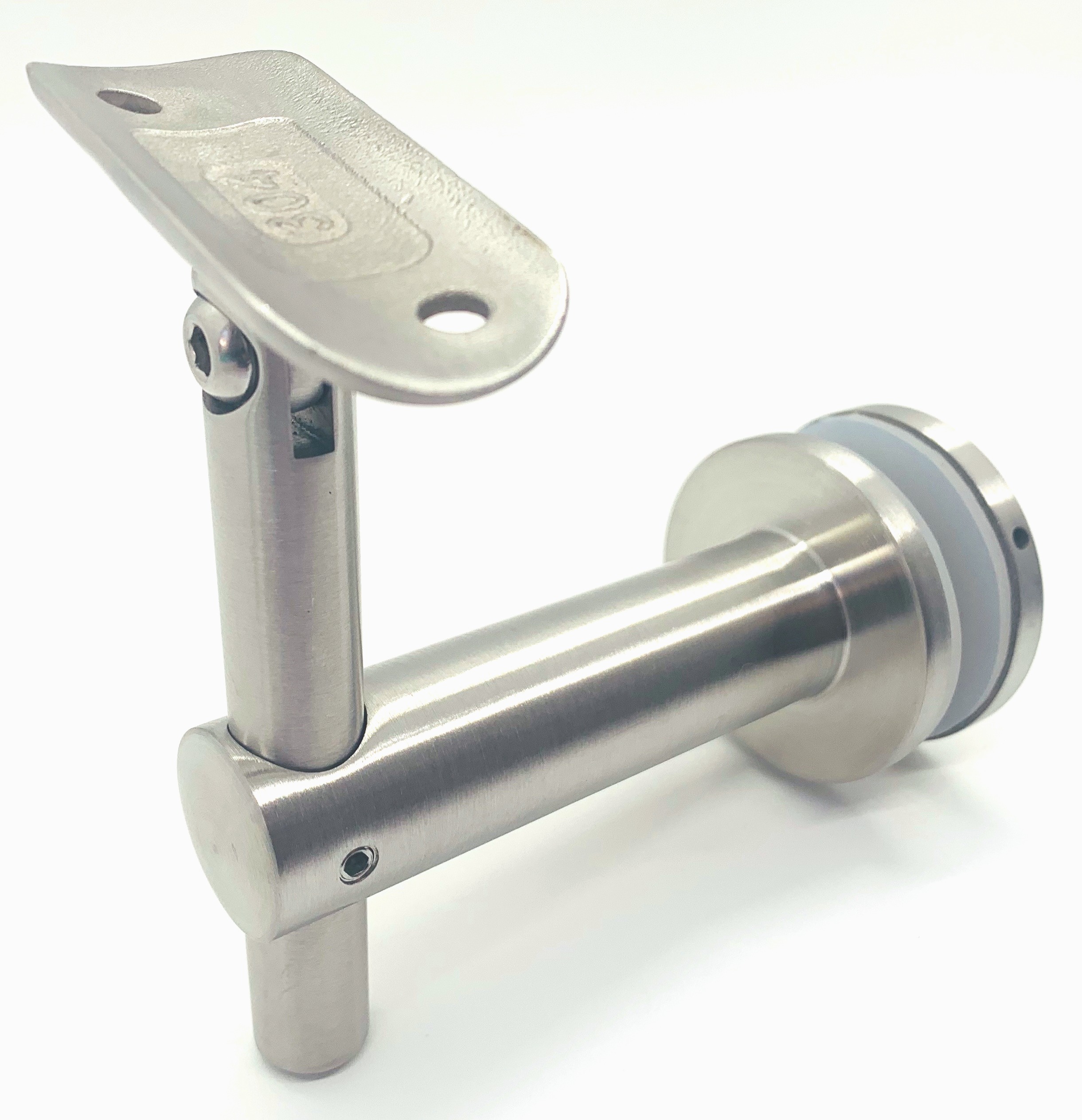Round Height Adjustable Glass Mount Bracket for Round Handrail.