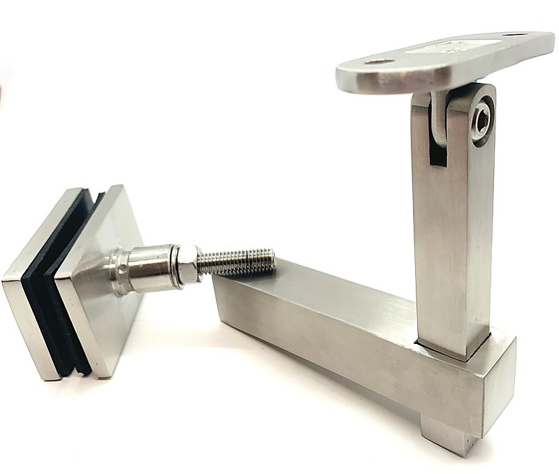 Rectangle Height Adjustable Glass Mount Bracket for Flat Bottomed Handrail. Material 316SS. Projection 3-3/4″(95mm). Height 1/2″~3-5/8″(28~93mm)
