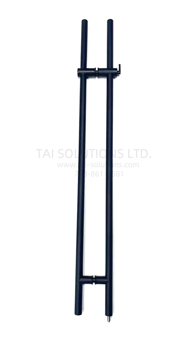 59″ Handle with Lock Matte Black color or SS color. H shape 41 1/2″ hole to hole. Diameter 1 5/16″