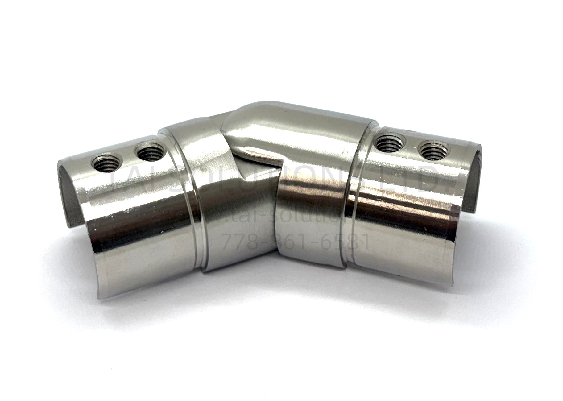 Horizontal 25~55º Adjustable Elbow for Round Top Cap Handrail. Handrail size 1.7″(42.4mm). Material 316SS